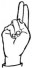 На ћирилици написано МАЈА ГОДОЧЕВИЋ састоји се из 13 слова [?]. Исписано ћириличном једноручном азбуком за глувонеме: